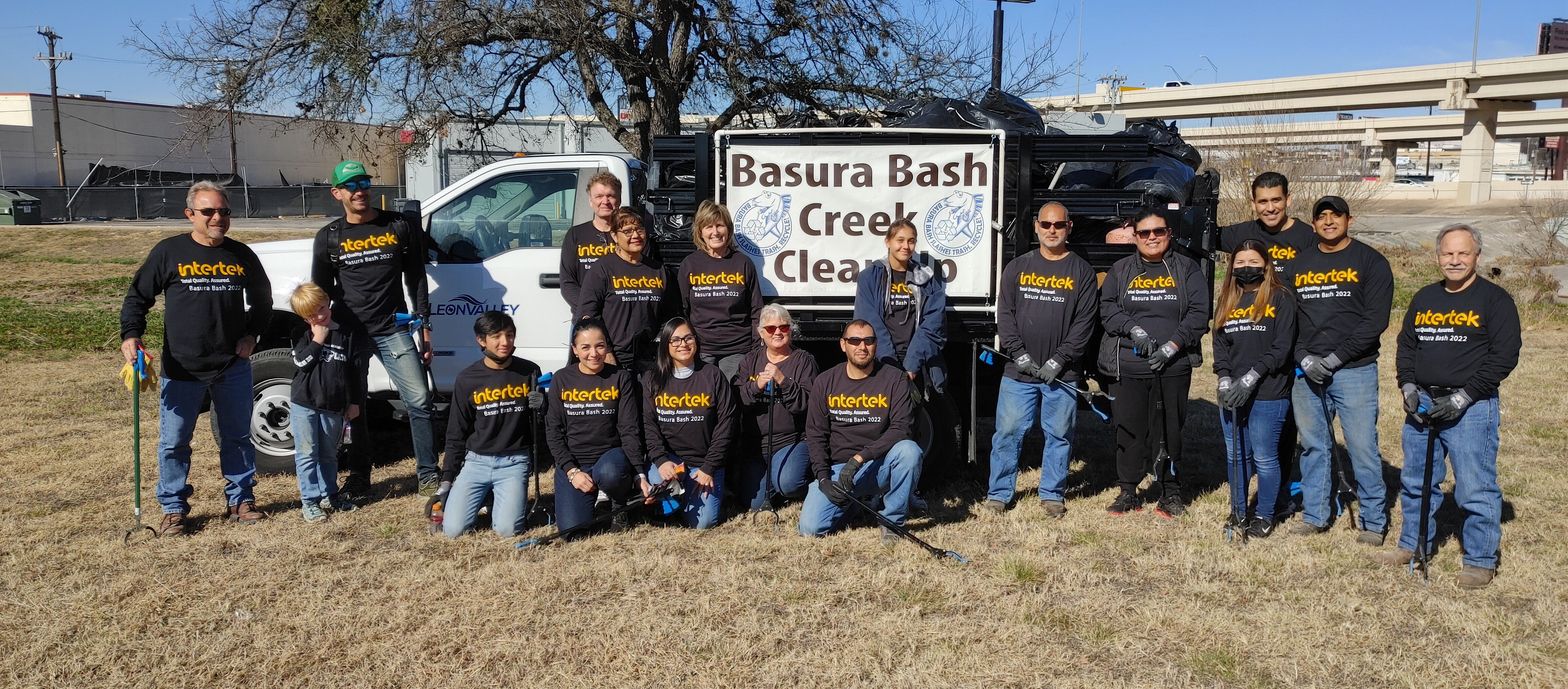 Intertek IAR team gathered Saturday, February 19, 2022 to participate in the 2022 Annual Basura Bash - a one day all-volunteer event to clean up the San Antonio Watershed. The annual citywide Spring Cleanup that began in 1994, this year saw thousands wade through muddy creeks and along the 13 miles of the San Antonio River gathering trash. The trash collected will be measured in tons and included a wide variety of items. Trash gathered will be sorted for recycling of plastics, paper, and bottles.