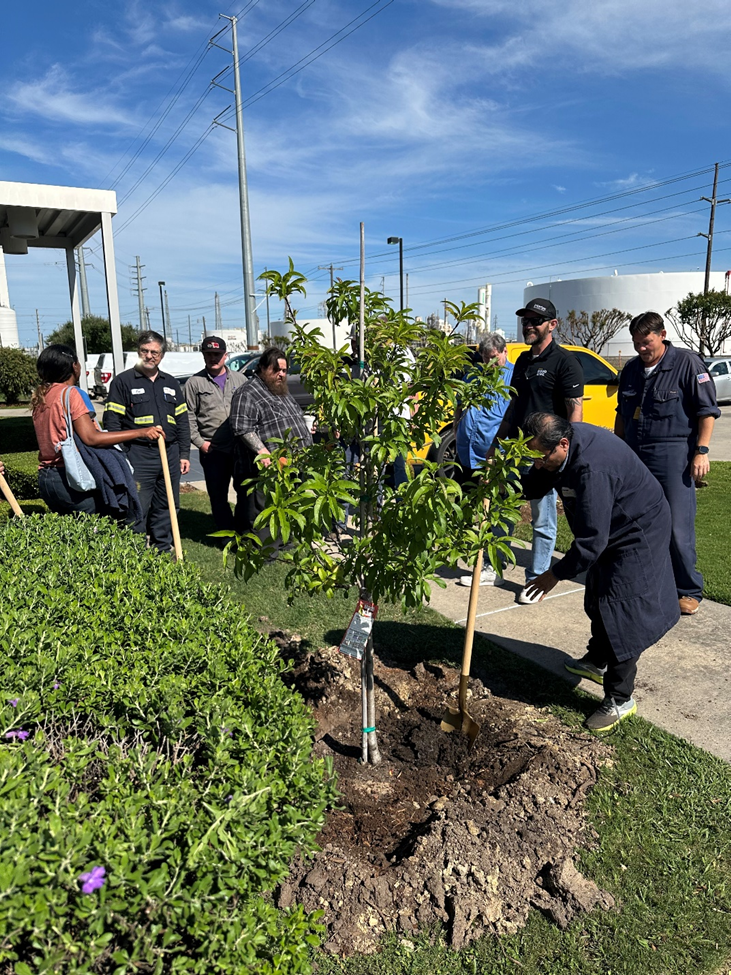 Description: For Earth Day 2024, our Caleb Brett operations and lab colleagues in Nederland, Texas, planted an orange tree outside the facility.
