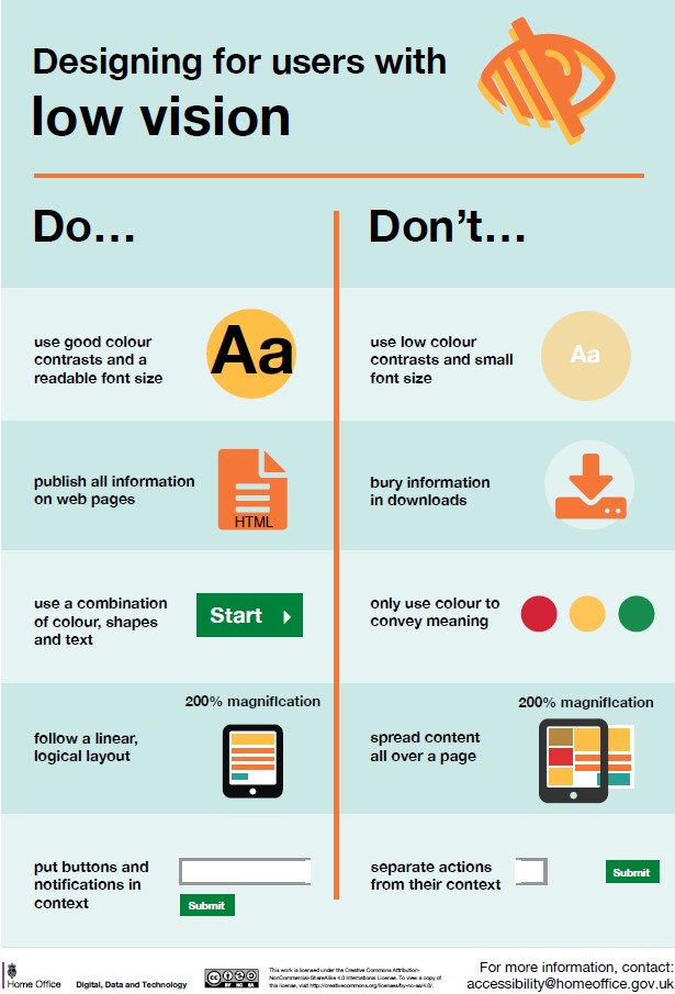 The dos and don’ts of designing for accessibility are general guidelines, best design practices for making services accessible