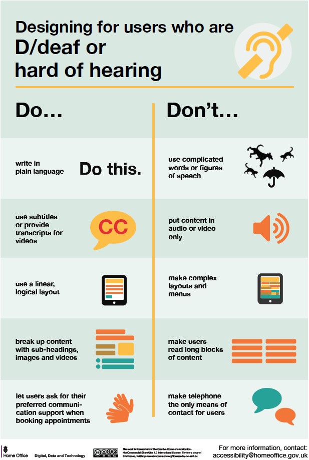 The dos and don’ts of designing for accessibility are general guidelines, best design practices for making services accessible