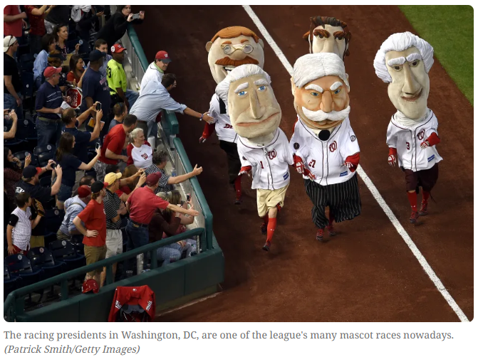 Well, the joke is on him though as more than half the teams in the league have their own versions of the mascot race – for example salmon in Seattle or presidents in Washington, D.C. – and Milwaukee’s famous five have been featured twice in commercials for ESPN’s SportsCenter show. In one, the sausages spoofed Pamplona’s Running of the Bulls, chasing panicked employees through a narrow office corridor.